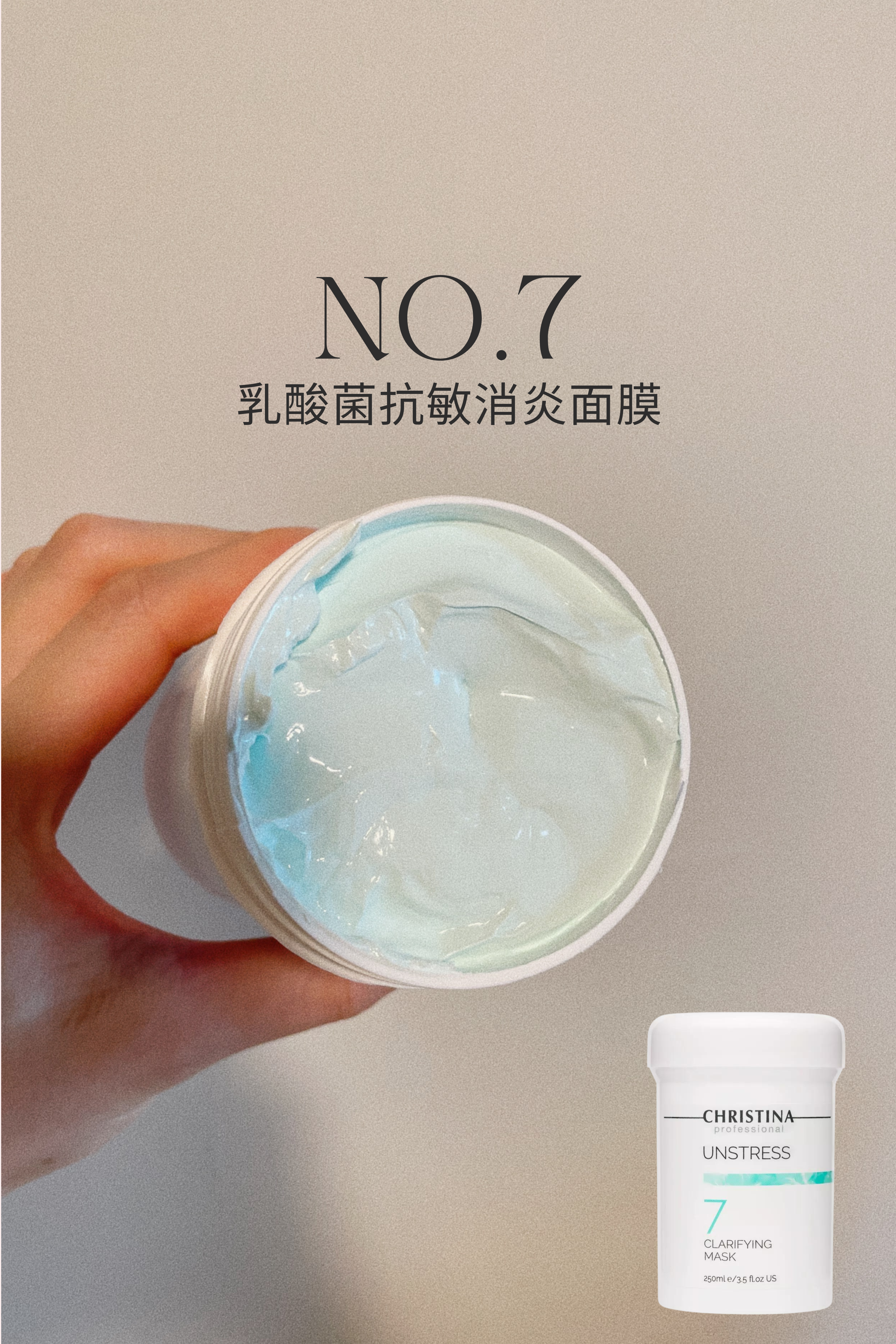 7號面膜核心專利成分MultiEx BSASM™ 及 Venuceane™ 有效舒緩皮膚敏感及為皮膚建立防禦,防止肌膚受到損傷。原理係用乳酸菌清除肌膚中的受損細胞,製造一個合適的環境幫助肌膚修復♡