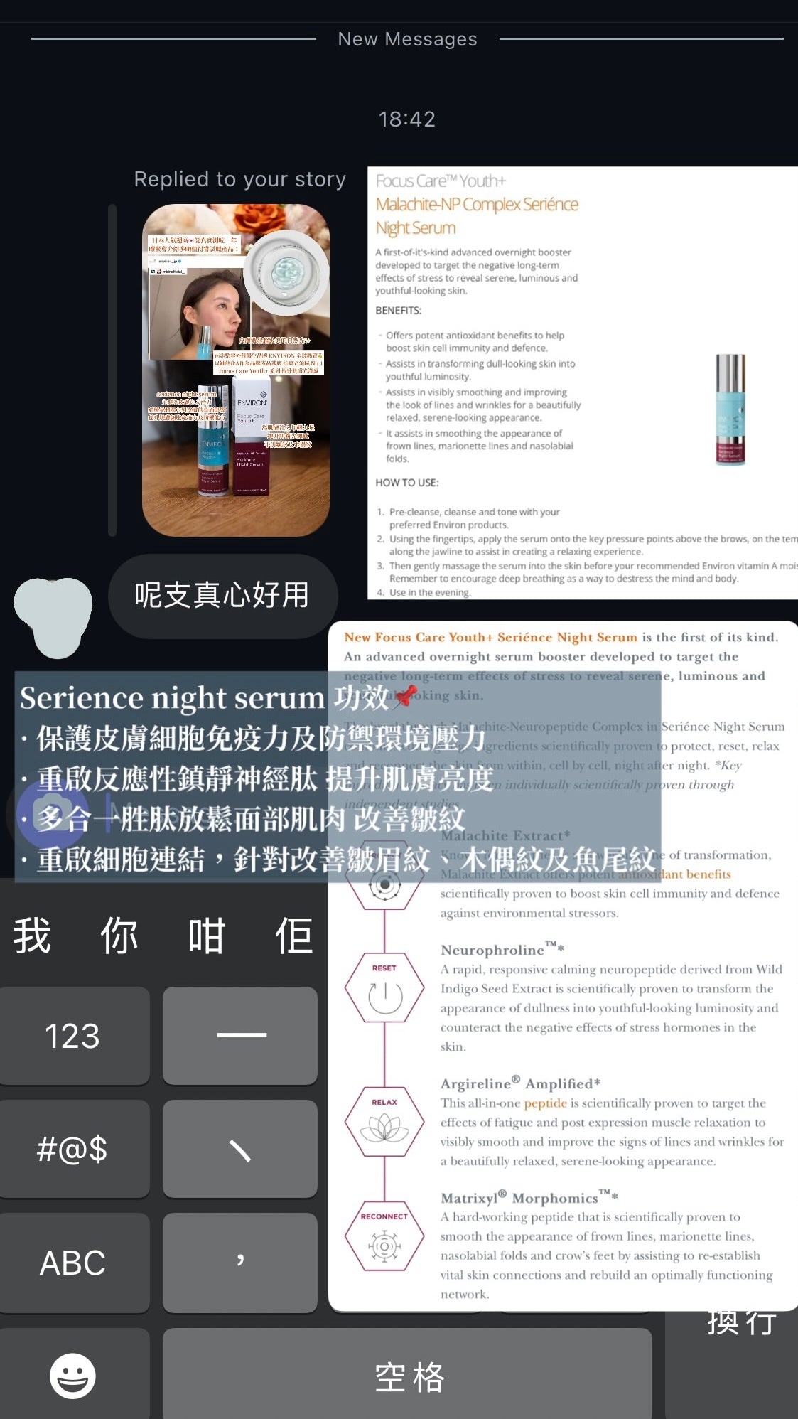 成日壓力大又瞓唔夠,皮膚就成日出問題?Environ 呢支 Focus Care™ Youth+ Malachite-NP Complex Seriénce Night Serum 就係為你而設!佢專門針對因壓力引起嘅肌膚問題,例如暗啞、乾燥、細紋同膚色不均,幫你喺夜晚入眠嘅時候修護肌膚,起身就發現皮膚reset 返健康狀態!