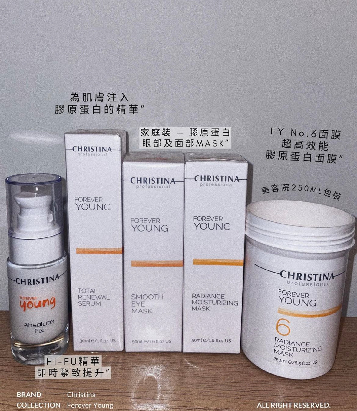 CHRISTINA 於日本是超人氣熱賣品牌 — 無論家用產品或美容院療程產品均大受日本OL、BLOGGER 及日本美妝雜誌歡迎。品牌9款系列均是熱門療程,經常出現於日本醫學美容中心、皮膚科及美容院,針對客人不同所需提供單一或混合療程解決皮膚問題。自1982年於以色列成立,至今40年一直口碑極佳,全球60個國熱賣,產品由醫生團隊研發再經過嚴格的臨床測試獲得GMP 國際認證才推出市面,是EADV 歐盟皮膚科學會推薦的醫學品牌。