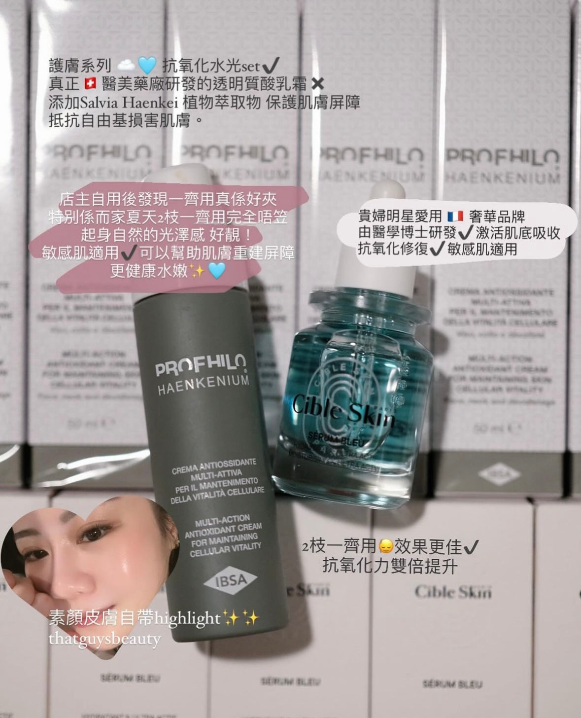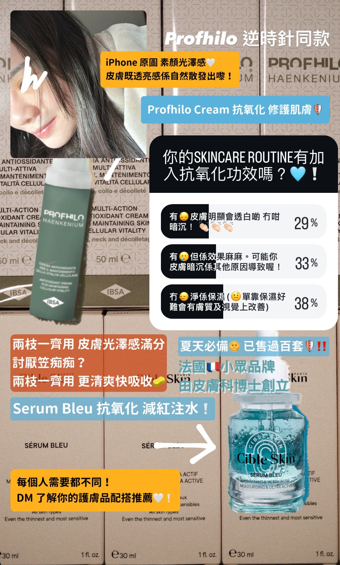 我個人係鍾意配搭Serum Bleu 抗氧化精華一齊用🩵 皮膚通透感係大大提升!好多人問水光set 既比例,其實真係冇一個標準嘅答案,放心根據自己喜好及膚質就可以!!鍾意滋潤啲就少啲serum 鍾意清爽啲就多啲serum 🙌🏻
