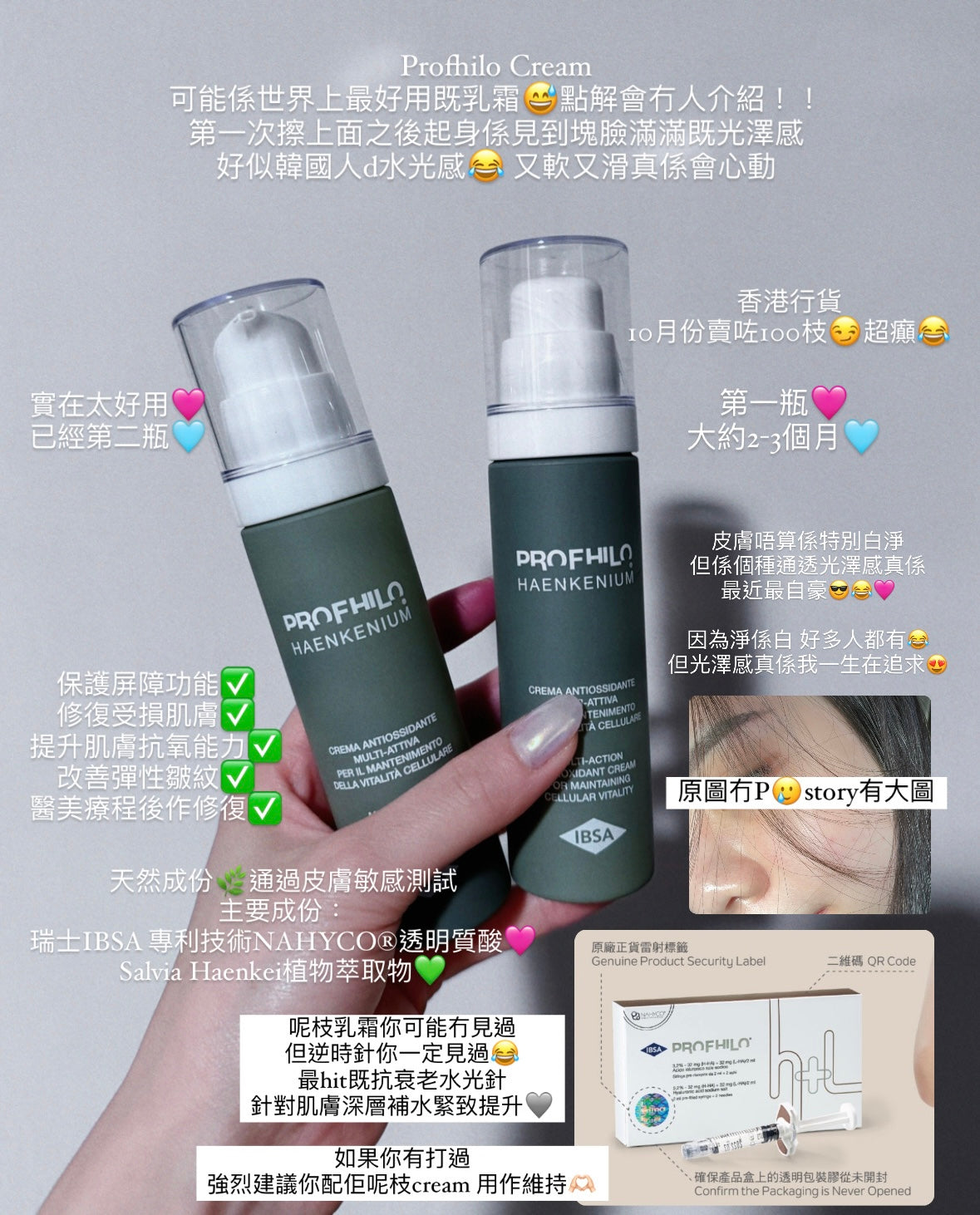 Peofhilo Cream 係同Teoxane 修復霜一樣😞 當初睇佢唔起,仲有啲嫌棄唔想試😂 (因為我朋友之前打完Profhilo 逆時針送的!但佢一直冇用就俾咗我) 所以真係同Teoxane 一樣機緣巧合下遇到佢🙏🏻 我發誓以後唔會睇小醫美診所入邊啲品牌!So far 試過既都好好用啊🩷