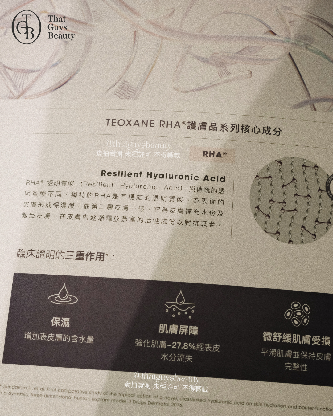 Teoxane - 應用於水光注射的玻尿酸護膚品牌,全球三大透明質酸製造廠,擁有獨家專利成分 RHA®️ 被全球多間醫學美容診所使用,專注高能量後修復。