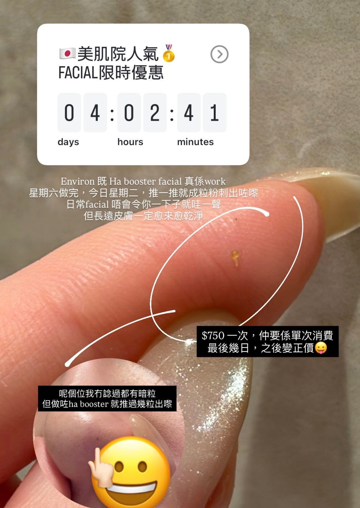 於𝐇𝐀 𝐁𝐎𝐎𝐒𝐓𝐄𝐑 𝐅𝐚𝐜𝐢𝐚𝐥 後 1-2 週,只進行毛孔深層清潔項目,幫助毛孔內的油脂污垢持續推出,加強改善暗瘡粉刺等問題。