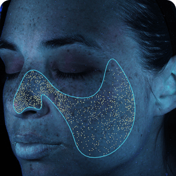 由於紫外線被表皮層黑色素吸收,形成肉眼難察覺的潛在日曬損傷區域。此項可揭示日光引起的早期色素沉澱與光老化問題。
