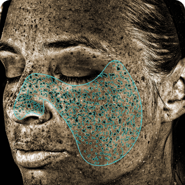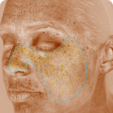 代表皮膚表層及下層的色素沉著與不均勻膚色,包括雀斑、黃褐斑與曬斑等。